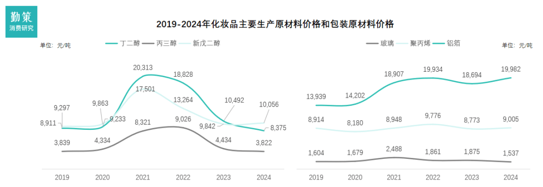 2021年,全球主要经济体延续货币宽松政策,加之疫情防控导致的供应链中断等因素共同推高了这些原料的价格◇▷。大部分原料价格在2023年逐渐回落至正常水平△-▼。此外•,包装材料的价格在过去几年保持相对稳定,但铝箔价格在2020年后因交通运输成本增加而有所上涨。
