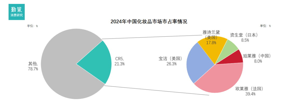 三大欧美巨头垄断了CR5内部超过八成的份额□,优势显著•。值得关注的是,本土品牌珀莱雅成功跻身前五▼◁,成为榜单中唯一的国货之光,以