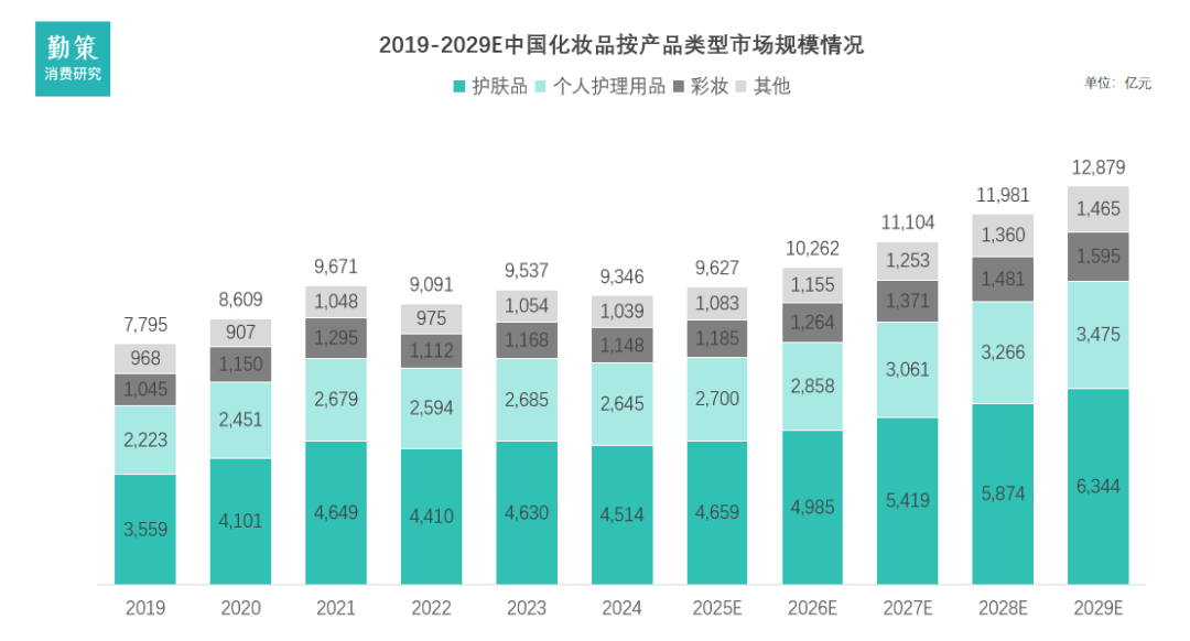 彩妆品类展现出“波动修复,缓步上行”的特点。其市场规模受疫情影响在2019-2021年间经历了一次明显的☆▲▼“倒V型◇▷”波动。预计从2024年的4,514亿元增长至2029年的6▼▽•,344亿元,增长绝对值和增速均远低于护肤品■。这表明彩妆消费具有较强的可选属性和场景依赖性,其增长更多地由社交生活常态化和消费升级温和驱动▽■,而非如护肤品般的“强刚性需求◇”驱动◆。