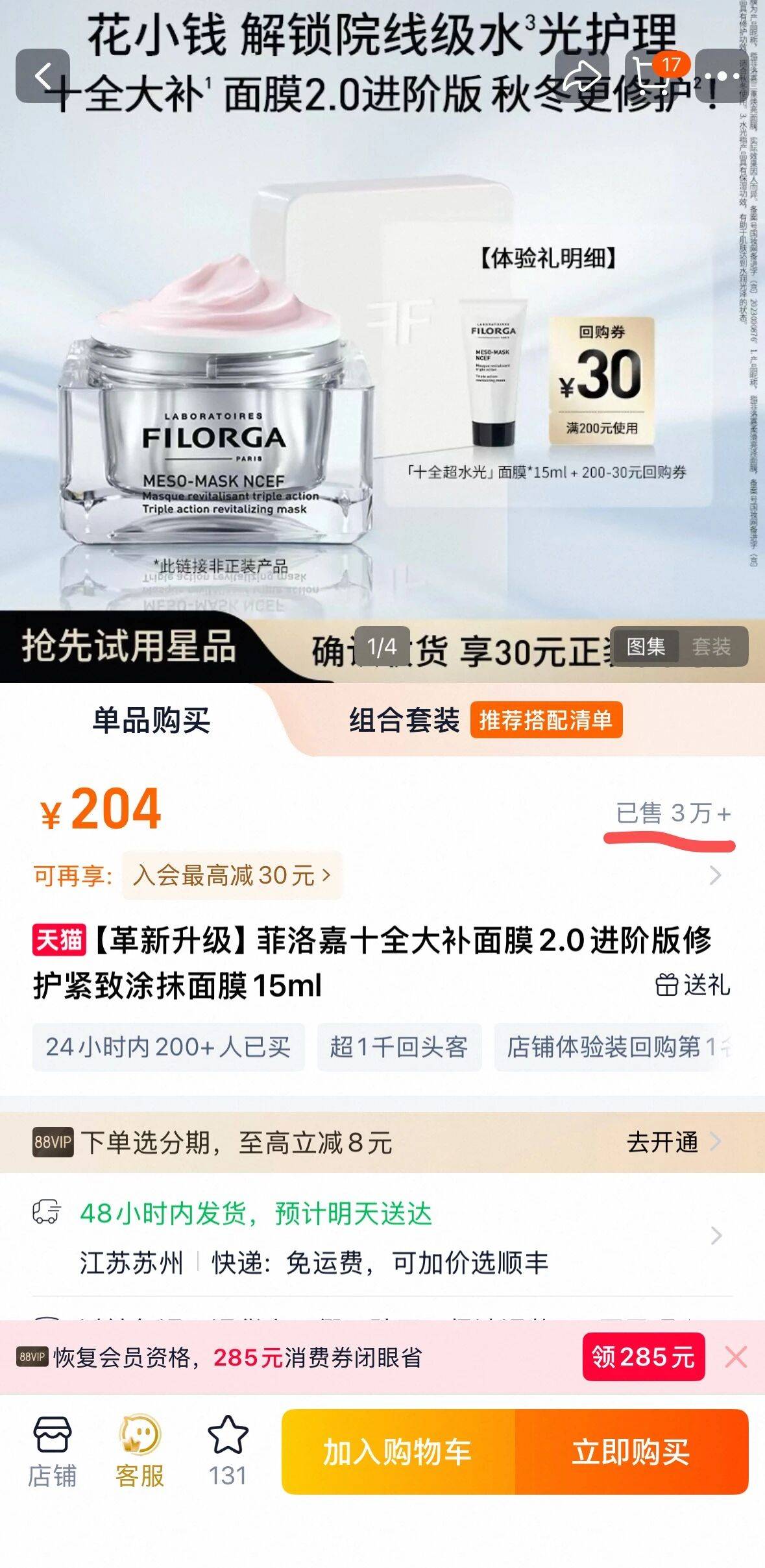 值得注意的是★○◁,撰稿日距离其发布闭店通知已过去数日■=○,但菲洛嘉天猫旗舰店的产品销售表现显示,依然有多款产品销量破万,其中菲洛嘉旗下明星爆品…“十全大补面膜2.0进阶版”更是显示已售3万+。