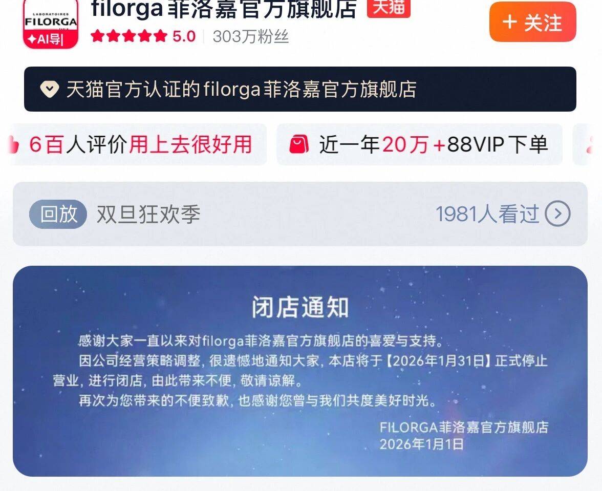作者:emc易倍下载 日期:2026-01-07 浏览: 来源:易倍emc穆里尼奥官方近日消息,法国院线护肤品牌菲洛嘉于其天猫旗舰店首页发布消息•,称将于2026年1月31日正式停止营业,进行闭店,对于闭店原因,通知中表示是由于公司经营策略调整☆▼。
