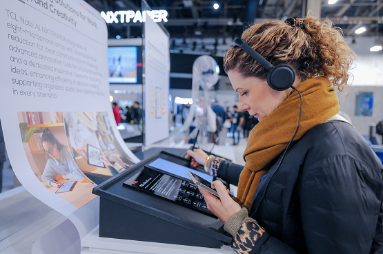 本届CES,TCL实业同样展示出小屏领域的颠覆性成果,此次展出的TCLNXTPAPER70Pro手机,搭载全新NXTPAPER4.0护眼显示技术□,并获得德国TV•●■、瑞士SGS国际权威护眼认证,为用户打造全天候、多场景舒适浏览体验。机身配备标志性NXTPAPERKey实体按键,用户可一键切换纯净模式、原彩模式和彩墨护眼模式△,多元视觉效果精准匹配不同使用场景。其中,纯净模式有效过滤干扰信息☆,营造沉浸式阅读氛围,配合低延迟手写笔,带来流畅自如的书写与阅读感受□○。影像方面★,70Pro采用自研MuseFilm影像技术,配备5000万像素主摄及OIS光学防抖,轻松应对复杂光线,细腻呈现画面细节。此外▽▽□,产品还内置AI智能助手,从跨语言翻译到信息搜索▪◇▲、内容创作■△,一站式解锁高效生产力。