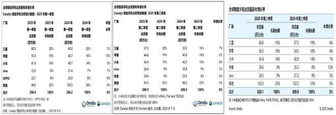 据Omdia数据显示,在国内智能手机市场一季度至三季度的出货量上看,2025年3个季度中并未出现过荣耀身影,反而是OPPO分别以出货量1060万台、1070万台、990万台位列3个季度的两次第三名和第五名,vivo分别以约1040万台★●、1180万台、1180万台位列3个季度的第四、第二和第一名。