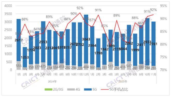 据中国信通院数据显示,2025年1至11月,国内市场手机出货量2■◇•.82亿部,同比增长0.9%=◆▼,其中,5G手机2.44亿部▷=-,同比增长1.3%,占同期手机出货量的86.6%,这一趋势表明,当前5G发展趋势慢慢成为厂家销售主流,极大压缩那些不能兼具5G能力的手机。