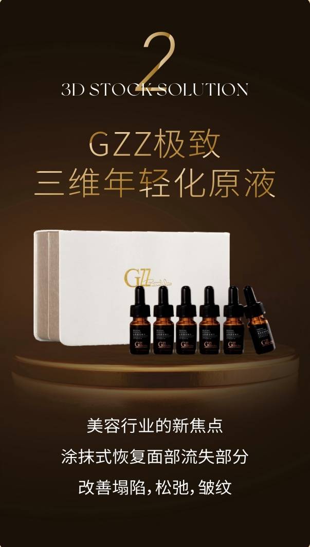GZZ原液系列:包含极致三维年轻化原液、睛采三维眼部套等核心产品,专注面部胶原流失修复,适配院线深层抗衰护理,可作为高端类医美疗程的核心搭配单品,也可作为居家延续护理的重点产品。极致三维年轻化原液主打全脸胶原再生,针对性改善肌肤塌陷、松弛、细纹等问题,搭配院线疗程可加速肌肤年轻化进程,居家使用可延续院线抗衰成效;睛采三维眼部套聚焦眼周抗衰,改善眼纹、眼袋、黑眼圈,实现眼周精准抗衰,填补院线眼周类医美护理的空白。