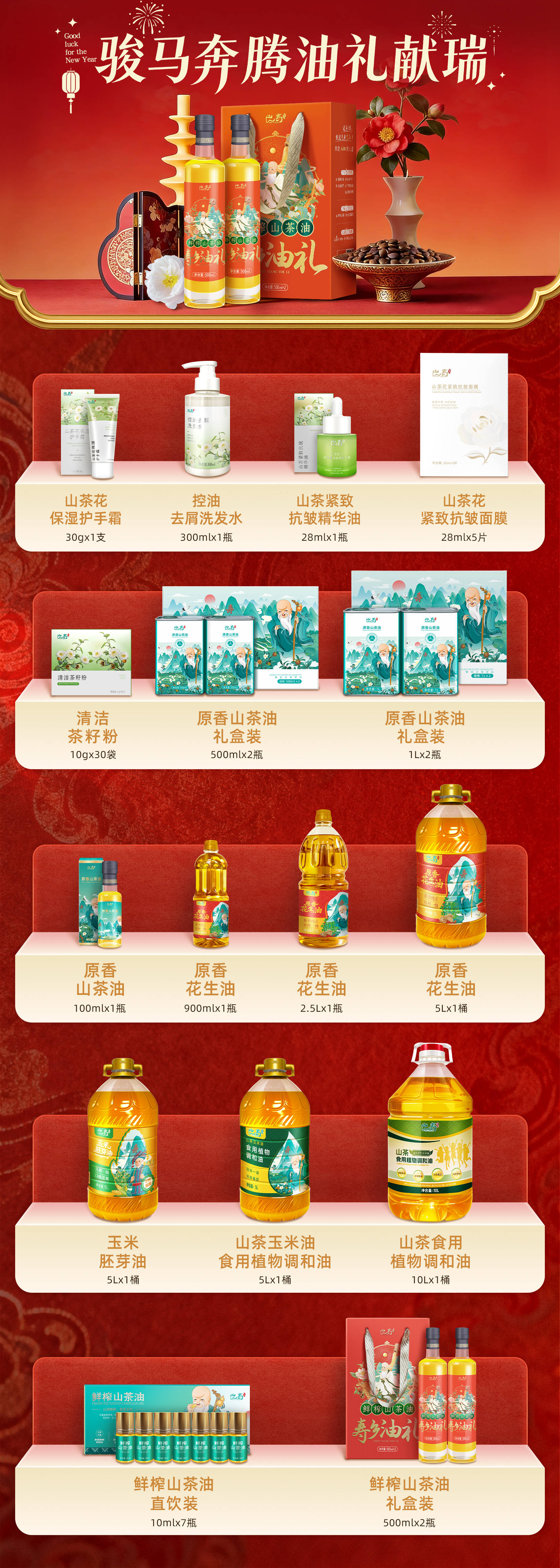 在企业年货采购清单中,健康粮油始终是核心品类。长寿(巴马)精心打造四大健康油品系列,全面满足企业单位福利采购需求:巴马山茶油、山茶调和油、花生油、玉米油,这四大油品系列覆盖各类饮食偏好,成为单位福利采购中的实用选择,让企业年货采购既体现健康关怀,又满足实际需求。