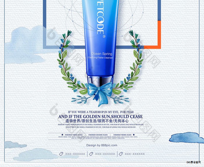 时尚小清新风格的简约插画护肤品包装设计,以